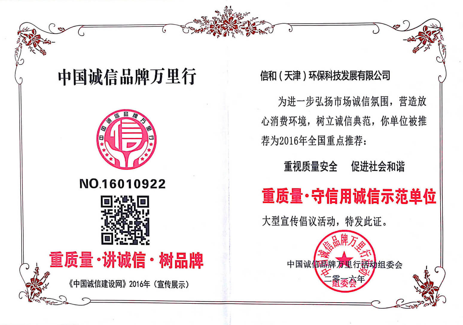 “質(zhì)量就是生命”。信和重質(zhì)量、守信用,被中國誠信品牌萬里行推薦“誠信示范單位”、“AAA資信等級(jí)”、“AAA級(jí)誠信經(jīng)營(yíng)示范單位”、“誠信經(jīng)理人榮譽(yù)證書”、“誠信企業(yè)家榮譽(yù)證書”、“中國產(chǎn)品質(zhì)量放心達(dá)標(biāo)企業(yè)”、“誠信品牌聯(lián)盟會(huì)員單位”、“中國質(zhì)量誠信AAA級(jí)品牌企業(yè)”、“中國百強(qiáng)優(yōu)秀企業(yè)”、“節(jié)能環(huán)保推廣產(chǎn)品”、“全國科技創(chuàng)新企業(yè)”等榮譽(yù)稱號(hào)。